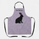 Ce tablier de cuisine est un violet marbré avec une silhouette noire du profil latéral d'un lapin assis avec de grandes oreilles. Customisez votre texte avec le modèle.