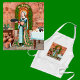 Saint Marthe de Béthanie (1er siècle) apparaît peut-être trois fois dans les Évangiles : préparer deux dîners (séparés?) (Luc 10:38-42 et Jean 12:1-3) et assister à l'élévation de son frère Lazare des morts (Jean 11:1-45 passim). Il est vrai qu’elle semble un peu piquante et sans aucun sens à Luc où elle reproche à sa soeur Marie d’avoir négligé ses devoirs domestiques en étant assise et en écoutant Jésus enseigner, et à Jean où elle dirige Jésus pour être venue tard aux funérailles de Lazare. Mais quelle hôtesse ne serait pas stressée par l’apparition d’au moins treize invités supplémentaires pour le dîner, même s’ils étaient Jésus et ses douze apôtres ? Et quelle femme ne serait pas stressée par la maladie et la mort d’un frère bien-aimé, apparemment ignoré par un ami cher de la famille ? Saint-Marthe n'était qu'humaine et il est mieux de se souvenir d'elle du Nouveau Testament comme l'exemple quintessence de l'hospitalité. Lors du dîner plus festif à Bethany en Jean 12:1-3, l'auteur déclare simplement : "et Martha servi" (en grec : κ α ὶ ἡ ά θ ρ δ ι η κ ό ν ...). Le charisme de Martha, sa façon de vivre l’Évangile par rapport au monde qui l’entoure, était d’assumer ses responsabilités domestiques envers sa famille et ses amis au meilleur de ses capacités par amour. Ainsi, elle est venue symboliser la vie active (vita activa) des communautés religieuses et des laïcs. + La figure de St. Martha ici a été extraite du panneau central d'un retable triptyque peint en 1503 par un artiste médiéval anonyme. Ce panel représente le dîner mentionné dans Jean 12:1-3 qui a eu lieu à Béthanie après l'élévation de Lazare et juste avant Jésus est arrivé à Jérusalem le dimanche des Palmiers. Donné par le canon Peter Lutren, le triptyque continue de griser l'autel Martha dans le choeur sud de l'église Notre-Dame (Liebfrauenkirche) à Oberwesel, Rhénanie-Palatinat, Allemagne. (Voir notre Dîner à Bethany COLLECTION pour l’image complète, des informations complémentaires et des articles connexes à acheter.) + Alors que la figure du saint, une partie de la vaisselle, le grand panier à pain et diverses denrées alimentaires sont dérivés de la peinture, d’autres éléments sont des photos de Pixabay qui ont été réorientés et retravaillés, ce qui donne une pastiche exclusive de Saints_Aabondance. Langue dans la joue, plutôt que les sandales anciennes ou les chaussures médiévales tournées avec des orteils pointus qu'elle porte dans le tableau original, Saints_Amany a donné à St. Martha des chaussures athlétiques confortables sur nos tabliers, en particulier pour le personnel de salle. Ses chaussures sont du genre de celles qu'une serveuse du 21ème siècle pourrait porter—seulement en bleu poudreux avec des lacets d'aqua brillants qui correspondent à son ensemble ! Alors qu’elle retourne dans sa cuisine en se déplaçant vers la gauche (nous avons retourné l’image), St. Martha peut porter un plateau vide, des morceaux de poisson ou des vaisselle sale. C'est vous qui décidez ! Allez dans l'outil de conception et masquez et/ou affichez la version que vous préférez! (Ici nous avons choisi le plateau vide.) + St. Martha est le troisième saint présenté dans notre série Apron. Elle est protectrice des femmes célibataires, des ménagères, des restaurateurs, des cuisiniers et de l'industrie hôtelière en général. Elle partage une journée de fête avec ses frères et soeurs Sainte Marie de Béthanie (à ne plus confondre avec la Madeleine) et Sainte-Lazare le 29 juillet. + Crédit photo spécial (extrait de la figure de Saint-Marthe) : Photo de Rolf Kranz d'une peinture du domaine public vieille de plus de 100 ans de WikiMedia Commons (Par Rolf Kranz - Own work) CC BY-SA 4.0, https://commons.wikimedia.org/w/index.php?curid=106002864).