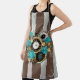 Tablier Steampunk Clock and Turquoise Roses on Striped