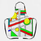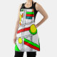 Ce tablier a un design moderne du milieu du siècle d'un look de vitrail avec des lignes noires et des cercles remplis de couleurs primaires et secondaires.