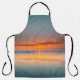 This apron features a serene and colorful sunset scene over calm waters, with vibrant hues of orange, pink, and blue blending across the sky. The sun rests near the center, casting a warm reflection on the water, while soft clouds add depth and texture. Black neck and waist ties provide a sleek contrast to the vivid print. Perfect for cooking, baking, or crafting, this apron combines practicality with artistry, making everyday tasks more inspiring. A thoughtful gift for nature lovers, travelers, or anyone who enjoys the calming beauty of sunsets.
