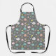 Il est toujours temps de prendre le thé dans ce tablier imprimé vintage cool, avec des tasses à thé dessinées à la main, des théières, des cuillères à café et des sacs à thé sur un arrière - plan gris