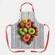 Ajoutez une touche de saveur à la cuisine avec cet étonnant tablier tout-en-papier sur le thème de la nourriture, qui comprend un mélange de tomates rayées, vertes, pourpres et jaunes sur une table de pique-nique gris patinée, cultivé sur place (et oddball), est idéal pour améliorer la mémoire musculaire. Les cultivars de tomates photographiés comprennent Green Zebra, Red Zebra, Indigo Rose, Brandywine, Black Prince, Midnight Snack cherry, et la cerise d'héritier. Basé sur la photographie originale de W.H. Sim. Tous droits réservés. Voir plus sur zazzle.com/walkswithnature