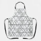 Ce tablier a un design moderne du milieu du siècle de triangles blancs qui tournent horizontalement avec des lignes noires.