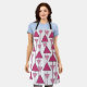 Ce tablier est décoré dans un style art déco de triangles entaillés sur des lignes dans deux tons roses.