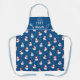 Amusant tablier bleu de famille avec un joli motif avec de mignons bonhommes de neige avec écharpes rouge et bleu clair et des casquettes rouges et noirs, décorés de flocons de neige. La légende de la partie supérieure, décorée de whisky stylisé, casquette cuisinier et épingle à rouler, lit le chef en lettres blanches et est personnalisable à votre nom.