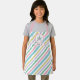 tablier Unicorne avec rayures en bleu, rose, vert, jaune et violet. Ajoutez le nom de votre enfant !