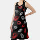 Tablier Valentines Red Silver Glitter Lips on Black