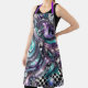 Vibrant Métallic Paisley Rose Purple Turquoise Bling avec Black and White Checked Apron Conçu par AI-Creator-Susan-M-Pierce CBDOilPrincess