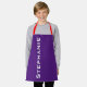 Nom jumbo personnalisé en gras Apron. Choisissez votre couleur. La valeur par défaut est le violet d'aubergine profonde avec des sangles rouges et une typographie blanche pure. Idéal pour l'artisanat. Tous droits réservés © 2023 Alan & Marcia Socolik.