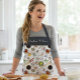Delight the sushi chef in your house with this personalized apron, featuring a pattern of watercolor sushi, chopsticks and dipping sauces on a white background. Near the top, the words "[Your Name's] Kitchen" or other text of your choice appear in editable handwriting script on a charcoal gray background.