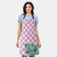 Ce tablier à carreaux roses présente un motif élégant associé à des feuilles de palmier tropicales et des feuilles de monstera inspirées de mes œuvres d'art originales à l'aquarelle dans des tons de vert frais. Conçu comme un tablier de cuisine unique pour elle, il allie charme classique et ambiance moderne et tropicale.