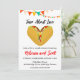 Célébrez votre amour pour les tacos et votre futur couple marié avec cette invitation amusante et moderne à l'aquarelle. Idéal pour une douche décontractée et festive pour couple, ce design est orné d'une illustration ludique en taco avec un remplissage en forme de coeur, entouré de éclaboussures d'aquarelle vibrantes. Customisez l'invitation avec le nom de votre couple, la date de la douche, l'heure et l'emplacement.