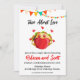 Célébrez votre amour pour les tacos et votre futur couple marié avec cette invitation amusante et moderne à l'aquarelle. Idéal pour une douche décontractée et festive pour couple, ce design est orné d'une illustration ludique en taco avec un remplissage en forme de coeur, entouré de éclaboussures d'aquarelle vibrantes. Customisez l'invitation avec le nom de votre couple, la date de la douche, l'heure et l'emplacement.