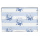 Une rayure horizontale large dans le bleu fané de myrtille avec les bouquets succulents des roses modifiés la tonalité bleus a dispersé environ. Très un regard de cottage, se perfectionnent pour l'amant bleu et blanc.