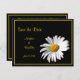 Le texte sur ce mariage shasta daisy enregistrer la carte de date est entièrement personnalisable. Pour modifier le libellé, utilisez les options de personnalisation. Pour modifier la police, la couleur de police ou la couleur arrière - plan, vous pouvez utiliser l'option personnaliser. Les couleurs de cette carte de réponse sont noir, blanc et jaune doré. Il aurait aussi l'air agréable avec un arrière - plan de la marine ou un autre arrière - plan bleu foncé. Le libellé de cette carte pourrait être modifié pour devenir une carte de réception, une carte d'hébergement ou une carte de direction.