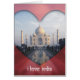 L'image du Taj Mahal est entourée d'un cadre en forme de coeur et porte les mots "I love India" en dessous.