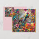 Des oiseaux lumineux, des fleurs et un coeur, fêtent l'anniversaire de Tammy. Les salutations sur la carte sont "Joyeux Anniversaire Tammy". Sur le dos de la carte se trouve une petite version de l'image avant, et beaucoup de place pour écrire un message. Fabriqué avec l'aide d'AI Bing.