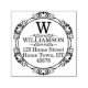 Un timbre traditionnel circulaire et personnalisé avec une bordure rétro décorative avec des ornements typographiques élégants, un monogramme initial, le nom et l'adresse de retour.