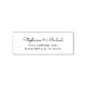 Timbre d'adresse de retour mariage simple, avec vos noms dans la police de script d'écriture rétro et votre adresse dans sans serif.