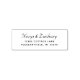 Timbre d'adresse de retour mariage simple et moderne, avec vos noms en caractères noirs et votre adresse en caractères sans serif.