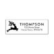 Un nom d'hiver et une adresse de retour avec un renne bondissant à côté de votre nom de famille et de vos coordonnées. Idéal pour ajouter une touche estampillée à vos cartes de fin de année.