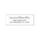 Élégant label d'adresse de retour auto-encrage tampon avec un script moderne propre manuscrit pour le nom personnalisé et une police simple et minimaliste de tous les casquettes pour l'adresse. Les deux polices ont des lignes fines élégantes et élégantes.
