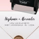 Élégant Moderne Gras Main Lettré Faire-part de mariage De Script De Brosse Retourner Adresse Auto-Inking Timbre. Ce couple adresse les timbres avec votre nom dans un style manuscrit assez cursif typographie de police et les informations d'adresse de retour facile à personnaliser. Gagnez du temps et ajoutez du style à votre mariage Enregistrez les dates Fête des mariées, RSVP, Baby shower, Anniversaire, Réchauffement de la maison, Annonces de graduation Carte de Noël et le timbre d'adresse de retour pour Invitation. Ils font même de grands cadeaux de Noël pour les membres de la famille et les amis, un cadeau mariage ou de mignons cadeaux de ménage pour un nouveau couple!