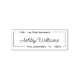 Tampon encreur auto-encreur d'adresse de retour de faire-part de mariage en calligraphie moderne élégante. Ces tampons d'adresse de nom complet comportant votre prénom et nom de famille dans une jolie typographie de police manuscrite et les informations d'adresse de retour, autour d'une bordure de ligne rectangulaire, faciles à personnaliser. Gagnez du temps et ajoutez du style à votre mariage, faire-part de mariage, EVJF, RSVP, pendaison de crémaillère, annonce de naissance, faire-part de remise de diplôme, fête d'anniversaire, carte de Noël et étiquette d'adresse de retour pour invitation. Ils font même de beaux cadeaux de Noël pour les membres de la famille et les amis, de jolis cadeaux de pendaison de crémaillère ou cadeau de mariage pour un jeune couple !