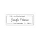 Tampon encreur auto-encreur pour adresse de retour de faire-part de mariage en calligraphie moderne élégante manuscrite. Ces tampons d'adresse de nom complet comportant votre prénom et nom de famille dans une jolie typographie de police de style manuscrit, et les informations d'adresse de retour, autour d'une bordure de ligne rectangulaire, faciles à personnaliser. Gagnez du temps et ajoutez du style à vos faire-part de mariage, cartes "Save the Date", enterrement de vie de jeune fille, RSVP, pendaison de crémaillère, Baby Shower, annonces de remise de diplôme, fête d'anniversaire, carte de Noël et tampon d'étiquette d'adresse de retour pour invitation. Ils font même de beaux cadeaux de Noël pour les membres de la famille et les amis, de jolis cadeaux de pendaison de crémaillère ou cadeau de mariage pour un jeune couple !