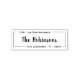 Tampon encreur personnalisable pour l'adresse de retour de faire-part de mariage à l'écriture calligraphiée élégante et minimaliste moderne. Ces tampons de nom de famille comportant votre nom de famille dans une jolie typographie de style écriture manuscrite et les informations d'adresse de retour, faciles à personnaliser. Gagnez du temps et ajoutez du style à vos faire-part de mariage, invitations à une soirée de mariage, une baby shower, une demande de RSVP, une pendaison de crémaillère, une fête d'anniversaire, des annonces de remise de diplôme, une carte de Noël et une étiquette d'adresse de retour pour invitation. Ils font même de beaux cadeaux de Noël pour les membres de la famille et les amis, de jolis cadeaux de pendaison de crémaillère ou un cadeau de mariage pour un jeune couple !