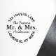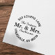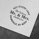 Annoncez votre nouvelle excitante avec ce tampon encreur élégant. Avec une belle police script et les mots "Futur M. et Mme", ce tampon est parfait pour personnaliser les faire-part de mariage, les invitations à la fête de fiançailles et les cartes de remerciement. Ajoutez une touche de sophistication et d'excitation à votre papeterie de mariage avec ce charmant design.