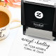 Problème de casse au transport, immédiatement re-fabriqué et livré en un temps record ! Principe technique du tampon standard efficace. Grace aux motifs "logo"proposés (d'un graphisme relativement simple mais efficace) et des choix perso' des polices et d'agencement dans la composition du tampon, la création est presque infini, du plus classique au plus insolite... Impossible donc de ne pas avoir "son" tampon bien personnel ! Impression parfaite sans "tache parasite". Très bonne finesse de détails...