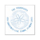 Ce design comprend une simple adresse de retour maritime adresse de retour nautique côtier auto-encre timbre, une plage tropicale sable dollar coquillage, un texte de typographie en cercle tendance, avec une mer océan océan Vie marine de mer, un classique minimaliste simple, une élégance simpliste unique, une nature botanique créative crustacée, une maison de plage adresse de retour, une maison côtière vivante de retour bord de mer, avec un océan animal marin vie