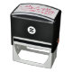 Problème de casse au transport, immédiatement re-fabriqué et livré en un temps record ! Principe technique du tampon standard efficace. Grace aux motifs "logo"proposés (d'un graphisme relativement simple mais efficace) et des choix perso' des polices et d'agencement dans la composition du tampon, la création est presque infini, du plus classique au plus insolite... Impossible donc de ne pas avoir "son" tampon bien personnel ! Impression parfaite sans "tache parasite". Très bonne finesse de détails...