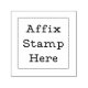 Les mots "Affix Stamp Here" dans un carré fait de points.
