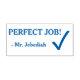 Cette conception motivante de timbres en caoutchouc comprend le message motivant "UN TRAVAIL PARFAIT !" et le nom d'un éducateur personnalisé. Il est également doté d'une coche décorative. Il pourrait être utilisé par un enseignant ou un éducateur pour marquer les affectations, pour reconnaître que l'étudiant a bien fait.
