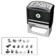 Problème de casse au transport, immédiatement re-fabriqué et livré en un temps record ! Principe technique du tampon standard efficace. Grace aux motifs "logo"proposés (d'un graphisme relativement simple mais efficace) et des choix perso' des polices et d'agencement dans la composition du tampon, la création est presque infini, du plus classique au plus insolite... Impossible donc de ne pas avoir "son" tampon bien personnel ! Impression parfaite sans "tache parasite". Très bonne finesse de détails...