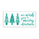 Timbre moderne et minimaliste pour cadeaux et cartes de vacances d'hiver. Illustration de sapins de Shabby et inscription "Nous vous souhaitons un joyeux Noël".