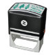 Problème de casse au transport, immédiatement re-fabriqué et livré en un temps record ! Principe technique du tampon standard efficace. Grace aux motifs "logo"proposés (d'un graphisme relativement simple mais efficace) et des choix perso' des polices et d'agencement dans la composition du tampon, la création est presque infini, du plus classique au plus insolite... Impossible donc de ne pas avoir "son" tampon bien personnel ! Impression parfaite sans "tache parasite". Très bonne finesse de détails...