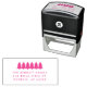 Problème de casse au transport, immédiatement re-fabriqué et livré en un temps record ! Principe technique du tampon standard efficace. Grace aux motifs "logo"proposés (d'un graphisme relativement simple mais efficace) et des choix perso' des polices et d'agencement dans la composition du tampon, la création est presque infini, du plus classique au plus insolite... Impossible donc de ne pas avoir "son" tampon bien personnel ! Impression parfaite sans "tache parasite". Très bonne finesse de détails...