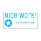 Ce design de timbre en caoutchouc positif comporte le message "Nice Work!" et un nom d'enseignant personnalisé. Il est également décoré en étoile. Il pourrait être utilisé par un enseignant, un éducateur, un instructeur ou un tuteur pour évaluer le travail d'un étudiant, afin d'indiquer qu'un étudiant a fait un travail exceptionnel.