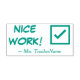 Ce design inspirant de timbres en caoutchouc comprend le message de louange "NICE WORK!" et un nom de tuteur personnalisé. Il pourrait être utilisé par un enseignant, un éducateur ou un tuteur pour évaluer le travail des élèves, pour indiquer qu'un étudiant a fait un travail exceptionnel.