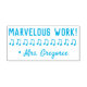 Ce design inspirant de timbres en caoutchouc comporte le message motivant "MARVELOUS WORK!" et un nom d'enseignant customisé. Il dispose également d'une cave décorative aux poutres apparentes. Il pourrait être utilisé par un enseignant ou un éducateur pour marquer les affectations, pour reconnaître que l'étudiant a bien fait.
