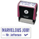 Ce design de timbres en caoutchouc motivant comprend le message "MARVELOUS JOB!" et le nom d'un éducateur personnalisé. Il est également doté d'une coche décorative. Il pourrait être utilisé par un enseignant ou un éducateur pour évaluer le travail des étudiants, pour reconnaître qu'un étudiant a fait un travail exceptionnel.