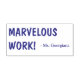 Ce design de timbres en caoutchouc encourageant comporte le message de motivation "MARVELOUS WORK!" et un nom d'enseignant customisé. Il pourrait être utilisé par un enseignant ou un éducateur pour marquer les affectations, pour reconnaître que l'étudiant a bien fait.