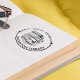 Problème de casse au transport, immédiatement re-fabriqué et livré en un temps record ! Principe technique du tampon standard efficace. Grace aux motifs "logo"proposés (d'un graphisme relativement simple mais efficace) et des choix perso' des polices et d'agencement dans la composition du tampon, la création est presque infini, du plus classique au plus insolite... Impossible donc de ne pas avoir "son" tampon bien personnel ! Impression parfaite sans "tache parasite". Très bonne finesse de détails...