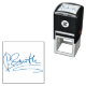 Personnalisez facilement ce tampon automatique avec votre propre signature personnalisée. Le cachet en caoutchouc de votre signature vous permet de gagner du temps, à vous et à vos employés. Il suffit de télécharger une photo de votre propre signature à l'invite. Disponible en différentes couleurs de boîtier et d'encre. Pas de quantité minimale de commande. Pas de frais d'installation.
