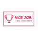 Ce timbre en caoutchouc positif comporte le message de louange "NICE JOB!" et le nom d'un enseignant ou d'un éducateur sur mesure. Il dispose également d'une icône de trophée décorative. Il pourrait être utilisé par un enseignant, un éducateur ou un tuteur de l'école pour marquer les affectations, pour indiquer que l'étudiant a fait un excellent travail.