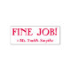 Ce design inspirant d'estampille en caoutchouc comporte le message positif "FINE JOB!" et le nom d'un enseignant ou d'un éducateur customisé. Il pourrait être utilisé par un enseignant, un éducateur ou un tuteur pour marquer les affectations, pour reconnaître qu'un étudiant a bien fait.